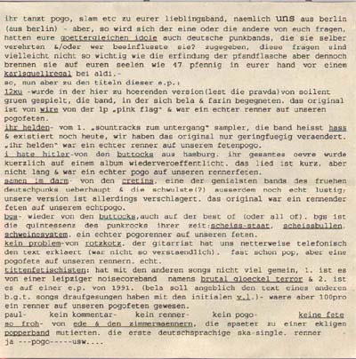 1994 Die legendäre EP-Single, die Coverversionen von Punksongs + "Paul", sowie ein Erklärungsblatt enthält (Seite 1 / Seite 2) - wurde bis 1998 nur bei Konzerten verkauft und ist nur als EP Vinyl-Single erschienen. Sie wurde allerdings auf dem Nachfolger "5, 6, 7, 8 - Bullenstaat!" noch mal komplett auf CD wieder veröffentlicht. |